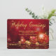 Red and gold Corporate Christmas card with gold Holiday Greetings script on a beautiful red and gold Christmas tree ornament background. This beautiful red and gold Christmas card is easily customised by simply adding your message and logo in the font style and colour of your choice.