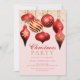 This elegant holiday party invitation features beautiful Christmas ornaments in red and gold with gold string lights on a soft pink background. Text can be easily changed by clicking "Personalise". Perfect for those family or business holiday parties.