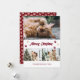 Modern red and gold photo Meowy Christmas card featuring three photos and paw prints on the front and a red background with gilded paws at the back. Easily personalise this elegant photo Christmas card with your photos, family name and the year.