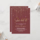 Design feature Sparkling Glitter Curtain Gold and Modern Elegant Script Typography "She did it!" with classic Burgundy red background