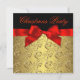 Elegant Red Gold Swirl Bow Christmas Party Invitation