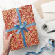 Elegant Red & Gold Swirls Pattern Boho Christmas Wrapping Paper