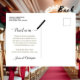 This beautiful save the date postcard will give your friends and family advance notice of your upcoming wedding. It features a clever design with a custom calendar where you can put a heart around your wedding date. The background is a lush marbled red colour, and there are decorative gold faux foil frilly accents in the corners. The back has a cute graphic reading "pencil us in" with space for your own custom note.