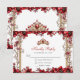 Elegant Red Golden Tiara Floral Quinceañera RSVP Card