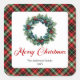 Elegant Red Green Plaid Pine Wreath Holiday Labels
