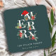 Elegant Red Green White Merry Christmas Foliage Square Paper Coaster