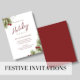 This design features an elegant holiday party invitations, a cute watercolor design, with red and green, pine tree greenery, a festive traditional, holly berries, with simple minimalist, classic, stylish foliage, winter Christmas party invites
