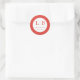 This elegant wedding sticker features a circular design with a textured red background and crisp white text. The initials "L" and "B" are prominently displayed in bold serif font, separated by a vertical line, while the phrase "THANK YOU" is written below in a slightly smaller typeface. The overall layout is symmetrical and balanced, creating a harmonious composition that conveys gratitude and formality. Perfect for expressing thanks at your special event, this sticker combines classic style with a polished tone, making it an ideal choice for any formal occasion.