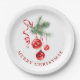 Elegant Red Ornament Christmas Holiday Party Paper Plate
