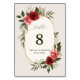 Elegant Red Pink Watercolor Roses Wedding Table Number