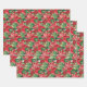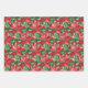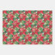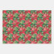 Red poinsettias and leaves on white, red and green wrapping paper sheets, beautiful for your Christmas holiday gift-giving.