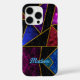 a stylish red purple and blue girly geometric iPhone 16 Case. Experience a unique interplay of matte and glossy look with this abstract geometric design. Layers of shapes in bold tones of red, black, purple and blue create depth, while the overall elegance of the pattern ensures your iPhone case is as stylish as it is protective. Show off your personal style, look fashionable, trendy and feel stylish around your friends with a unique design on your iPhone or customise it over another product of your choice.
