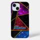 Elegant red purple girly geometric iPhone 15 Case. To make it extra special, it is also monogrammed and personalised with name or initials or any text you like, click the "customise further" link and use the design tool to modify the design if you like.