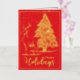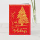 Celebrate the season with this elegant holiday card featuring a graceful reindeer and Christmas tree accented in gold. Set against a bold red background with snowfall and a refined border, it captures the warmth and joy of the holidays. Inside, a heartfelt greeting in graceful script wishes peace, joy, and cherished moments throughout the season and New Year. A timeless choice for sharing holiday cheer.