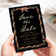 Elevate your winter wedding with this elegant save the date card, featuring a hand-painted red ribbon and watercolor greenery framing your details in chic gold foil lettering. A flowing handwritten script brings warmth and refinement, while the deep black background adds dramatic contrast and timeless elegance. Perfect for Christmas, holiday-themed, or formal winter weddings.