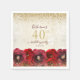 Elegant Red Rose Floral Gold 40th Birthday Party Napkin