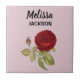 Elegant red rose flower pink ceramic tile
