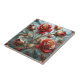 Elegant Red Rose Stained Glass Floral Gold Accent Ceramic Tile