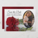 Elegant Red Rose with Oval Photo Wedding Save The Date