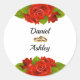 Elegant Red Roses and Ring envelope seals. Personalise your own by changing the names of the couple and wedding ring.