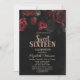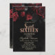 Elegant Red Roses Black Sweet 16 Invitation