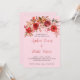 This invitation's soft pink background, combined with its delicate floral design and thoughtful colour scheme, makes it a timeless choice for couples looking to celebrate their love in style. The autumnal flowers, along with the varied foliage, create a stunning visual impact. Perfect for fall, winter, rustic, country, floral-themed, or elegant weddings, this invitation will leave a lasting impression on your guests, setting the stage for a truly unforgettable celebration.