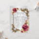 Pretty red roses and gold leaf pattern frame. This beautiful wedding invitation is a modern and elegant way to invite family and friends to your wedding. Personalise the card by changing the text in the fields provided front and back. You can change font style, size, and colour, as well as paper type and style.