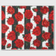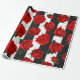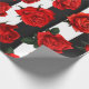 Elegant Red Roses on Black & White Stripes Wrapping Paper