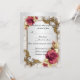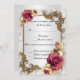 Pretty red roses and gold leaf pattern frame. This beautiful wedding RSVP/response card is all ready to be personalised for your special wedding day. Personalise the card by changing the text in the fields provided front and back. You can change font style, size, and colour, as well as paper type and style.