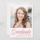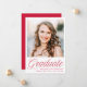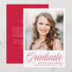 Announce your graduate’s milestone with this bold red photo graduation announcement, designed with a clean and modern layout that keeps the focus on their portrait. The graduate’s photo is featured prominently at the top, creating a bright and confident presentation, while “Graduate” appears below in elegant red script for a classic and celebratory touch. Their name, school, and graduation year are displayed beneath in traditional lettering, adding balance and a polished academic finish. The back includes space for personalized text, perfect for sharing graduation party details, a heartfelt thank you message, or future plans. Ideal for both high school and college graduates, this red graduation announcement offers a vibrant and meaningful way to celebrate and share their achievement with family and friends.