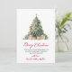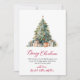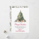 Modern Botanical Foliage Elegant Calligraphy Red Script Christmas Tree Non Photo Christmas Cards. This festive simple minimalist Christmas Holiday cards features a watercolor christmas tree with decoration gold balls, presents and a „Merry Christmas” greeting text which is written in a nice hand lettered font type in red. On the backing watercolor winter botanical foliage greenery, berries, eucalyptus leaves, pine needles and branches. This festive Custom Photo Christmas Cards are a great way to remind loved ones that you're thinking of them this Winter Holiday Season.