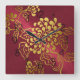 Elegant Red Sheen Gold Chrysanthemum Square Wall Clock