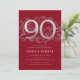 Elegant Red Silver 90th Birthday Invitation