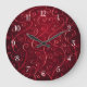 Beautiful red wall clock with an abstract textured digital painting of whimsical glowing red swirls.