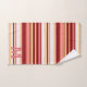 Elegant red white and pink stripes monogram bath towel set