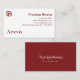 The back side showcases your name and job title centered on a rich red background, subtly overlayed with a faint artistic text watermark for added elegance. The contrast between the soft white and deep red tones gives this card a luxurious and professional aesthetic.