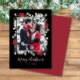 Elegant Red White Floral on Black Photo Christmas Holiday Card