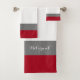 Elegant Red White Grey Stripes Script Monogram Bath Towel Set
