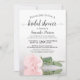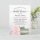 This beautiful bridal shower invitation features a photo of a single long stemmed pink rose lying on its side reflecting in a pool of water with waves and ripples. The elegant script calligraphy title lends class and style. Includes information on both the shower and gift registry. Perfect way to celebrate the bride to be.