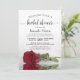This beautiful bridal shower invitation features a photo of a single long stemmed red rose lying on its side reflecting in a pool of water with waves and ripples. The elegant script calligraphy title lends class and style. Includes information on both the shower and gift registry. Perfect way to celebrate the bride to be.