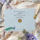 This elegant & vintage Regency Era English Garden A7 size wedding invitation envelope with a lovely, Bridgerton aesthetic theme, features your personalised return address on the back flap (simply delete the script "and" + a name if only one name is desired), a soft dusty blue envelope colour (choose any background colour you wish!), wispy scrolling typography accent images, watercolor peacock and purple wisteria, and inlay image of English Garden scene with floral and botanical accents to match the invitation design. Easily personalise the template wording! You are welcome to edit each component further for perfect spacing and placement once your wording is entered, by clicking the blue "Edit using design tool" button at the bottom of the "Personalise" window. Navigate to the "layers" tab in the left hand column of the edit screen, select the front or back side layer, then click on the layer element you would like to change and make it your own - click "done" button in the upper right hand corner of your screen. ♥ Check out the full collection (scroll below) with matching wedding invitation, formal RSVP card, informal RSVP QR Code instructions card, details enclosure cards and much more! Custom design requests and template questions are always welcome - click the "message" button or email directly (with a quick response time): contact@figandlilyco.com. Design is lovingly created Fig and Lily Studios ♥