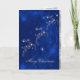 Elegant Christmas greeting card, with graphics of silver tone reindeer made up of stars, against a dark blue colored background, with snowflakes and sparkles. A decorative silver tone band, runs down the right edge of the card. Personalize the text, inside and out, to suit your holiday needs.