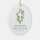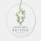 Elegant Religious Cross Green Botanical Baptism Ceramic Ornament