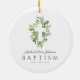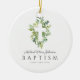 Religious Cross Green Botanical Baptism Ceramic Ornament