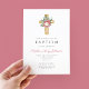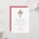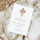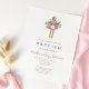 Elegant Religious Cross Pink Floral Girl Baptism Invitation