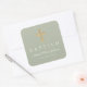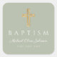 Personalized Elegant Religious Cross Sage Green Baptism Square Sticker.