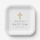 Elegant Religious Dusty Blue Script Boy Baptism Paper Plate