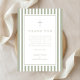 Elegant Religious Sage Green Boy Baptism Thank You Card