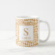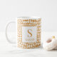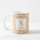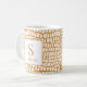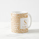 This elegant personalized mug showcases a rich, textured crocodile skin pattern in a stylish warm tan and white color combination. The contemporary design allows for easy personalization with your name and initial, creating a sophisticated monogram piece. It's a perfect everyday coffee cup and a luxurious personalized gift for colleagues, bosses, or anyone who appreciates exotic, neutral decor.