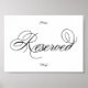This beautiful and timeless horizontal "Reserved" table signage adds a simple elegance to any classic wedding reception, shower or party motif. The luxurious script design features a whimsical and romantic modern black calligraphy lettering. The lovely font with a customizable background color makes it easy to fit any theme. For other colors or matching products, please visit the JustFharryn Zazzle store, or contact the designer, c/o Fharryn@yahoo.com All rights reserved. #zazzlemade